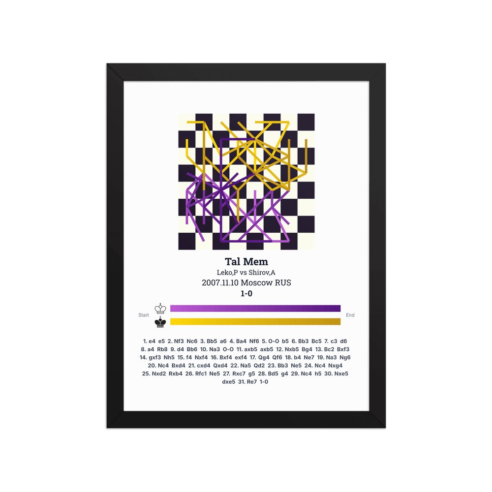 Museum-quality poster on thick, durable matte paper. A sharp, clean look for any chess visualisation.