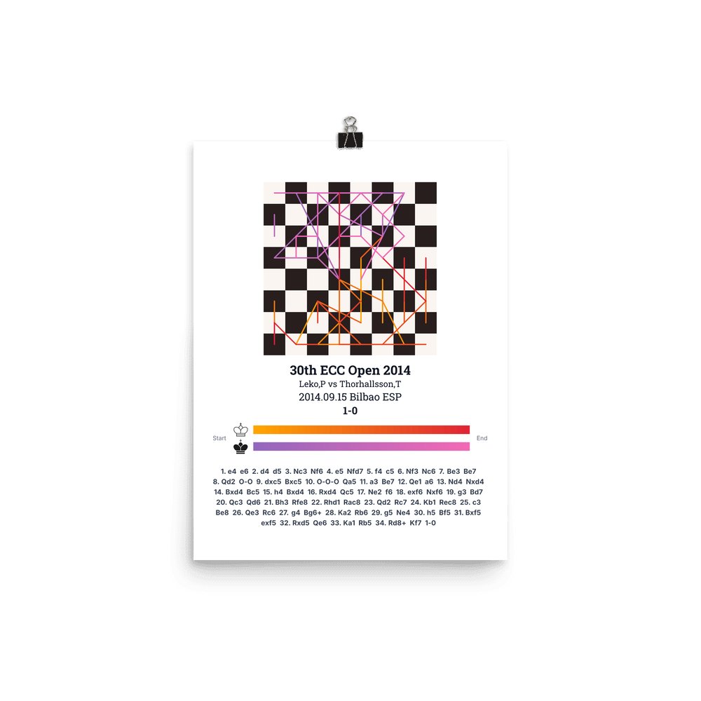Museum-quality poster on thick, durable matte paper. A sharp, clean look for any chess visualisation.
