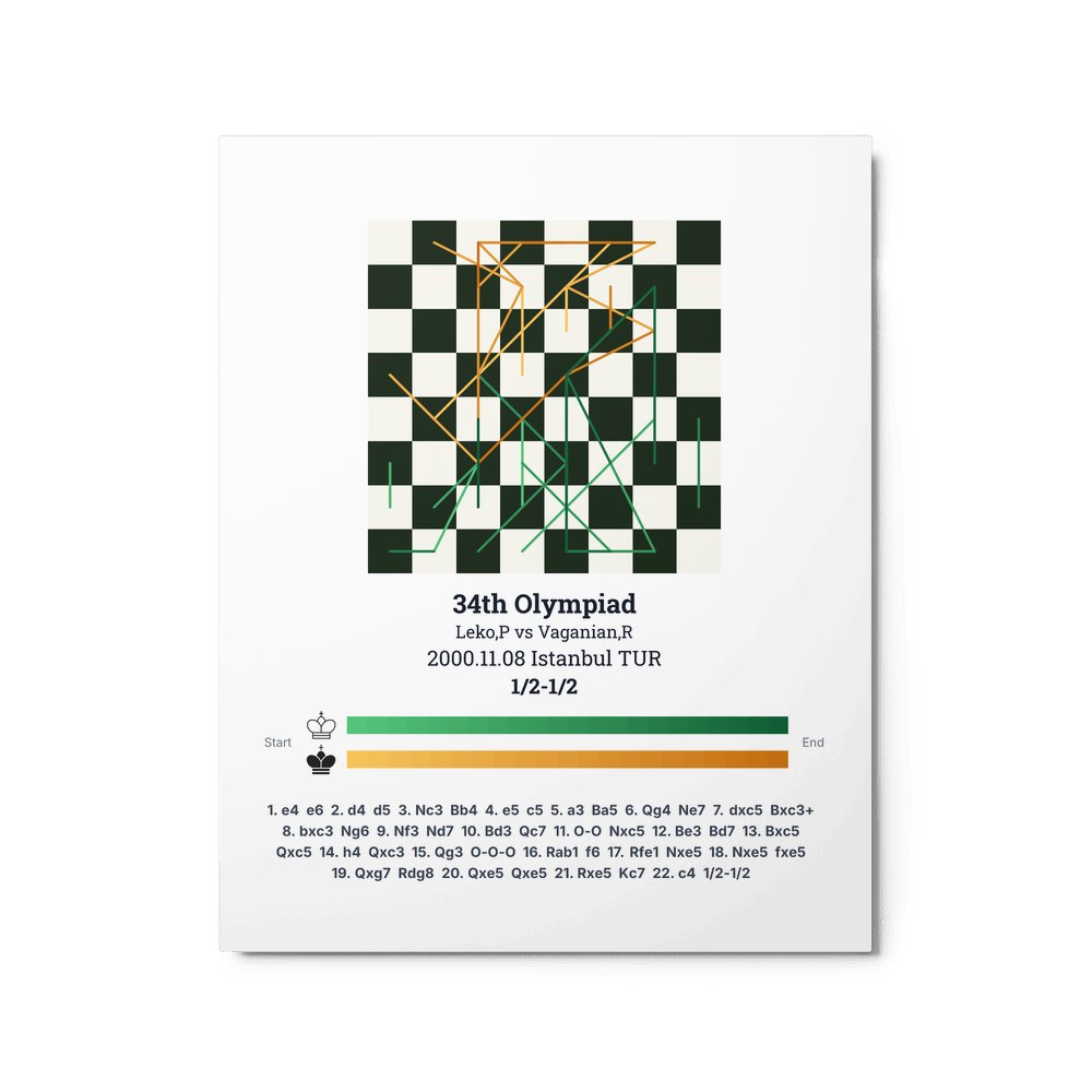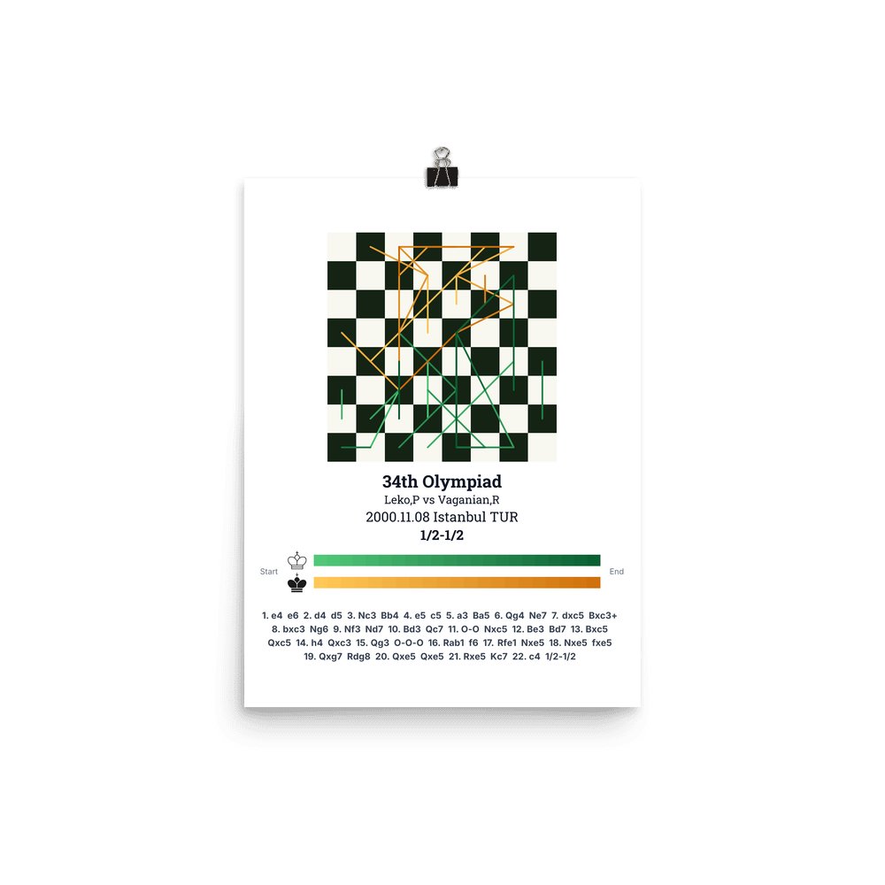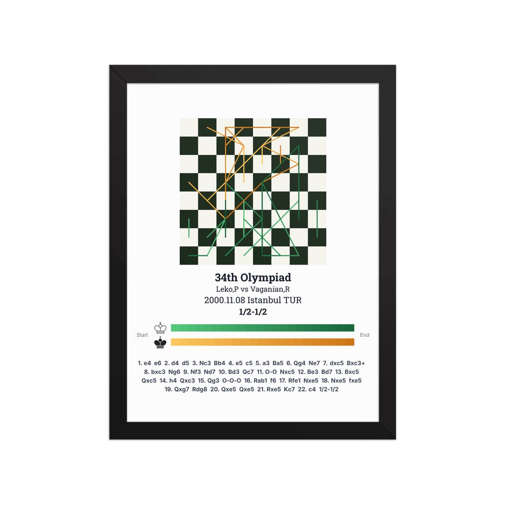 Museum-quality poster on thick, durable matte paper. A sharp, clean look for any chess visualisation.