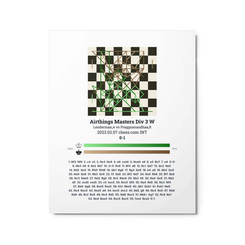 Museum-quality poster on thick, durable matte paper. A sharp, clean look for any chess visualisation.
