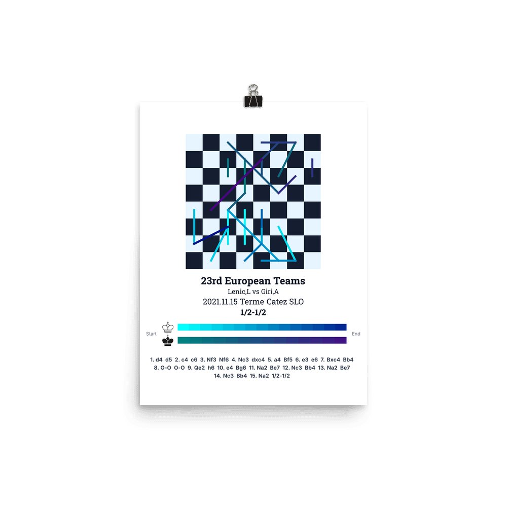 Museum-quality poster on thick, durable matte paper. A sharp, clean look for any chess visualisation.
