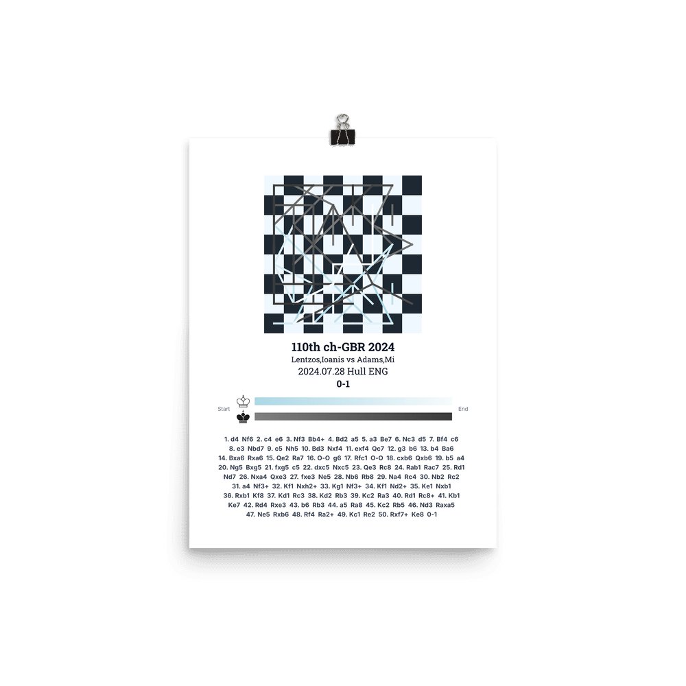 Museum-quality poster on thick, durable matte paper. A sharp, clean look for any chess visualisation.