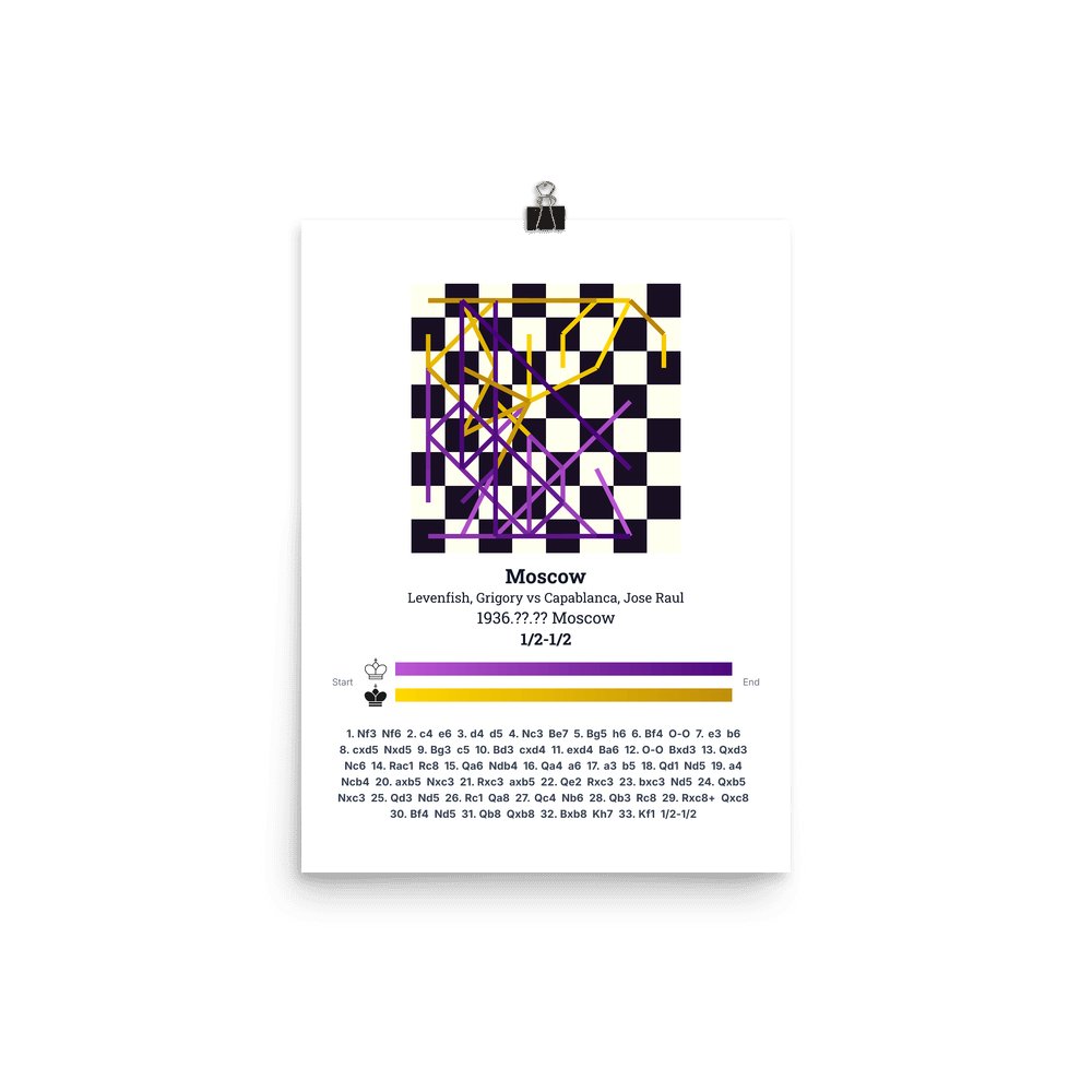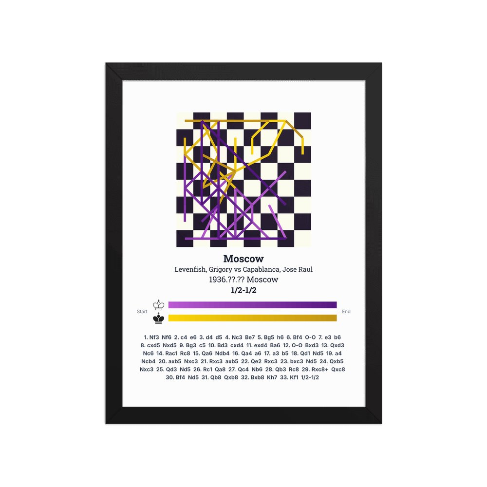Museum-quality poster on thick, durable matte paper. A sharp, clean look for any chess visualisation.