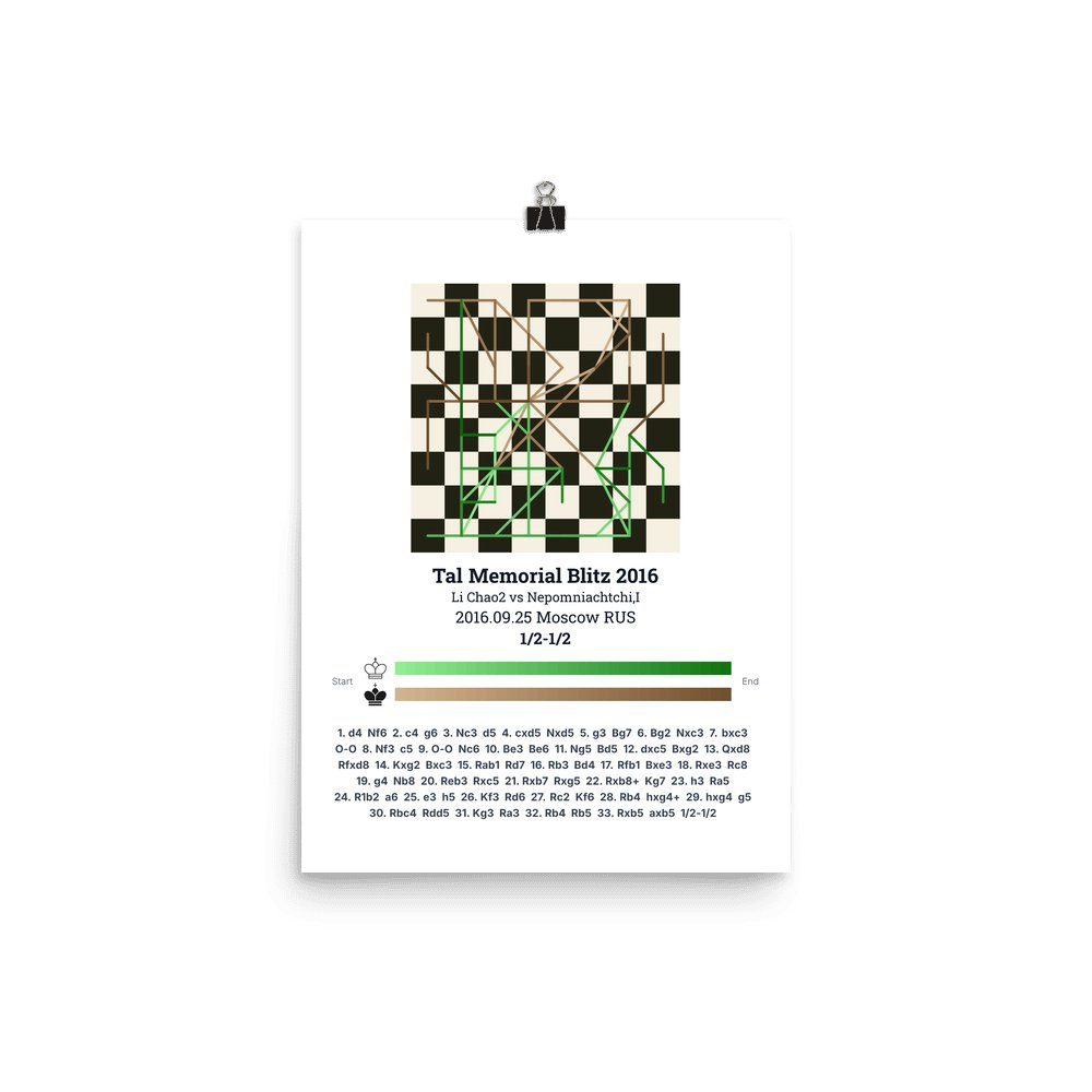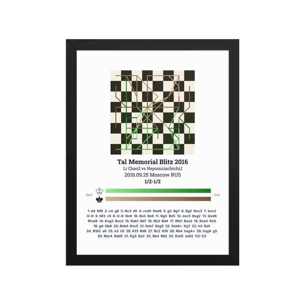 Museum-quality poster on thick, durable matte paper. A sharp, clean look for any chess visualisation.