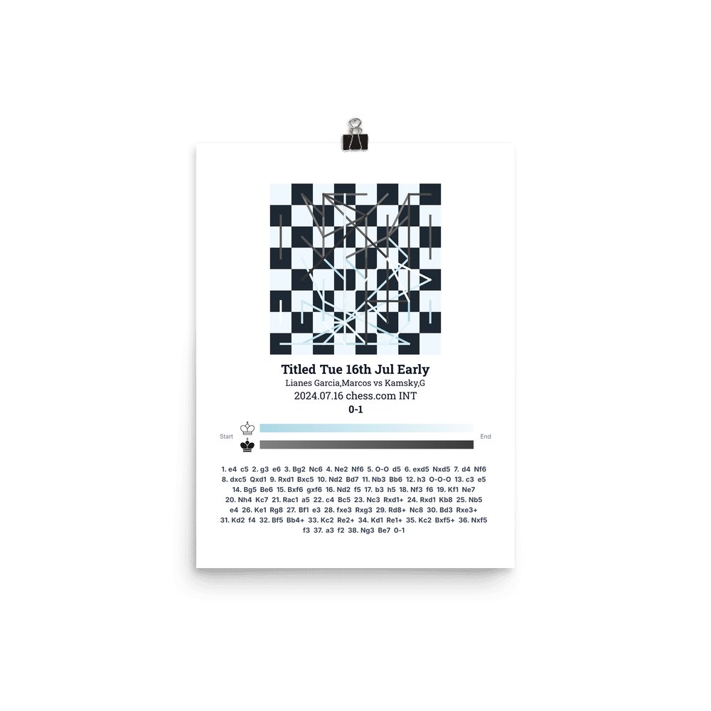 Museum-quality poster on thick, durable matte paper. A sharp, clean look for any chess visualisation.