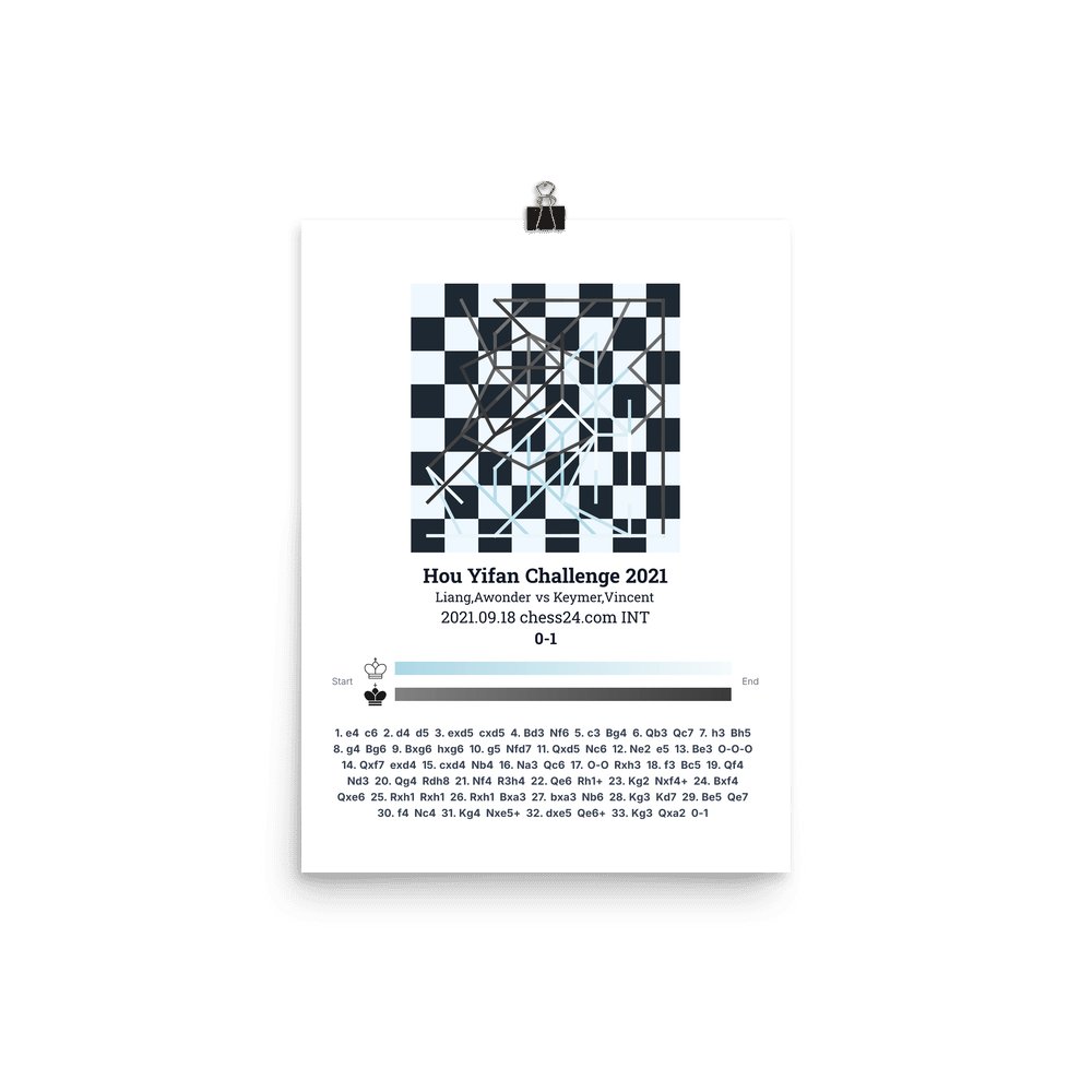 Museum-quality poster on thick, durable matte paper. A sharp, clean look for any chess visualisation.