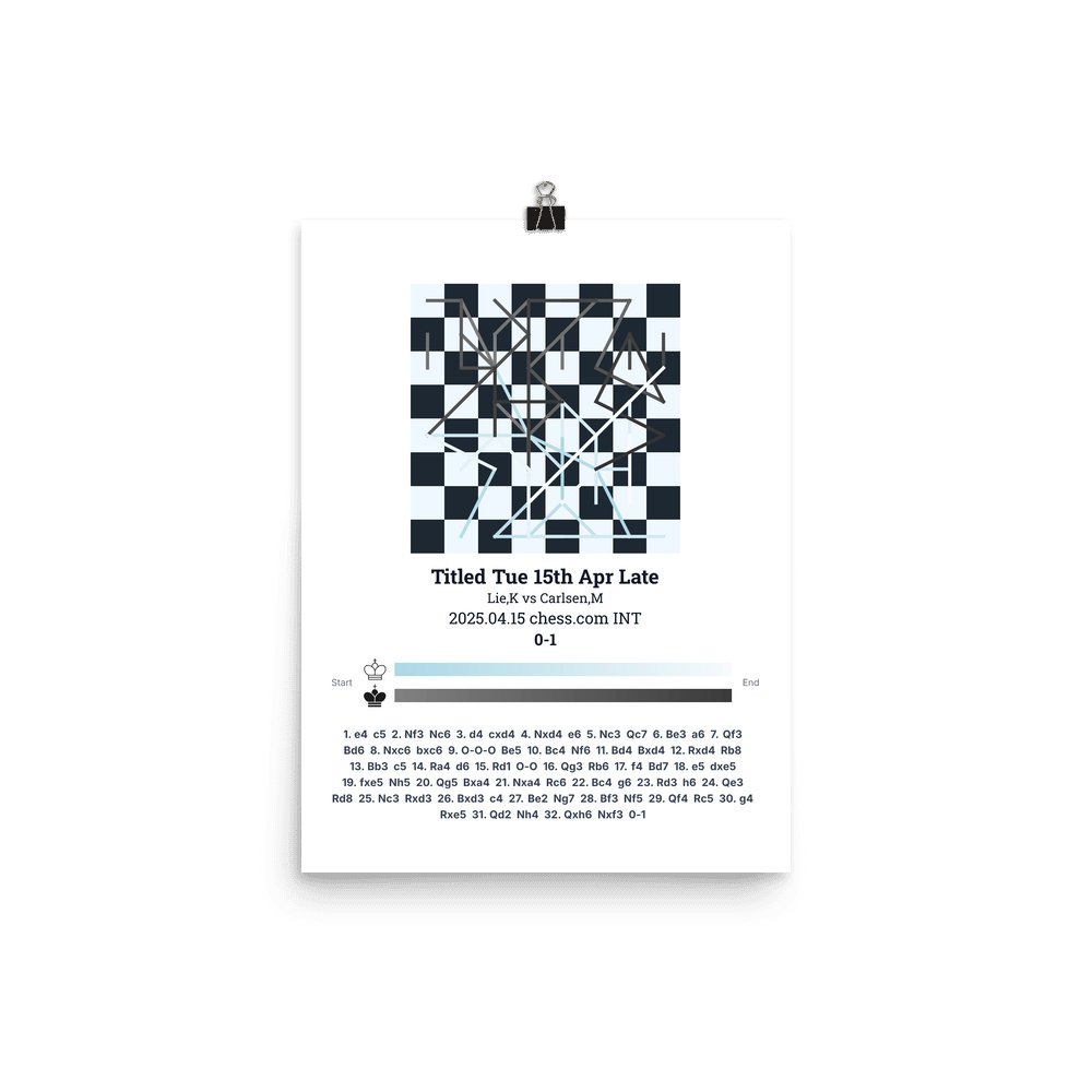 Museum-quality poster on thick, durable matte paper. A sharp, clean look for any chess visualisation.