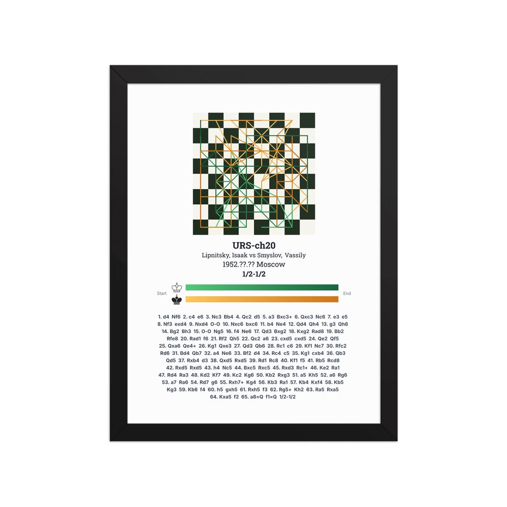 Museum-quality poster on thick, durable matte paper. A sharp, clean look for any chess visualisation.