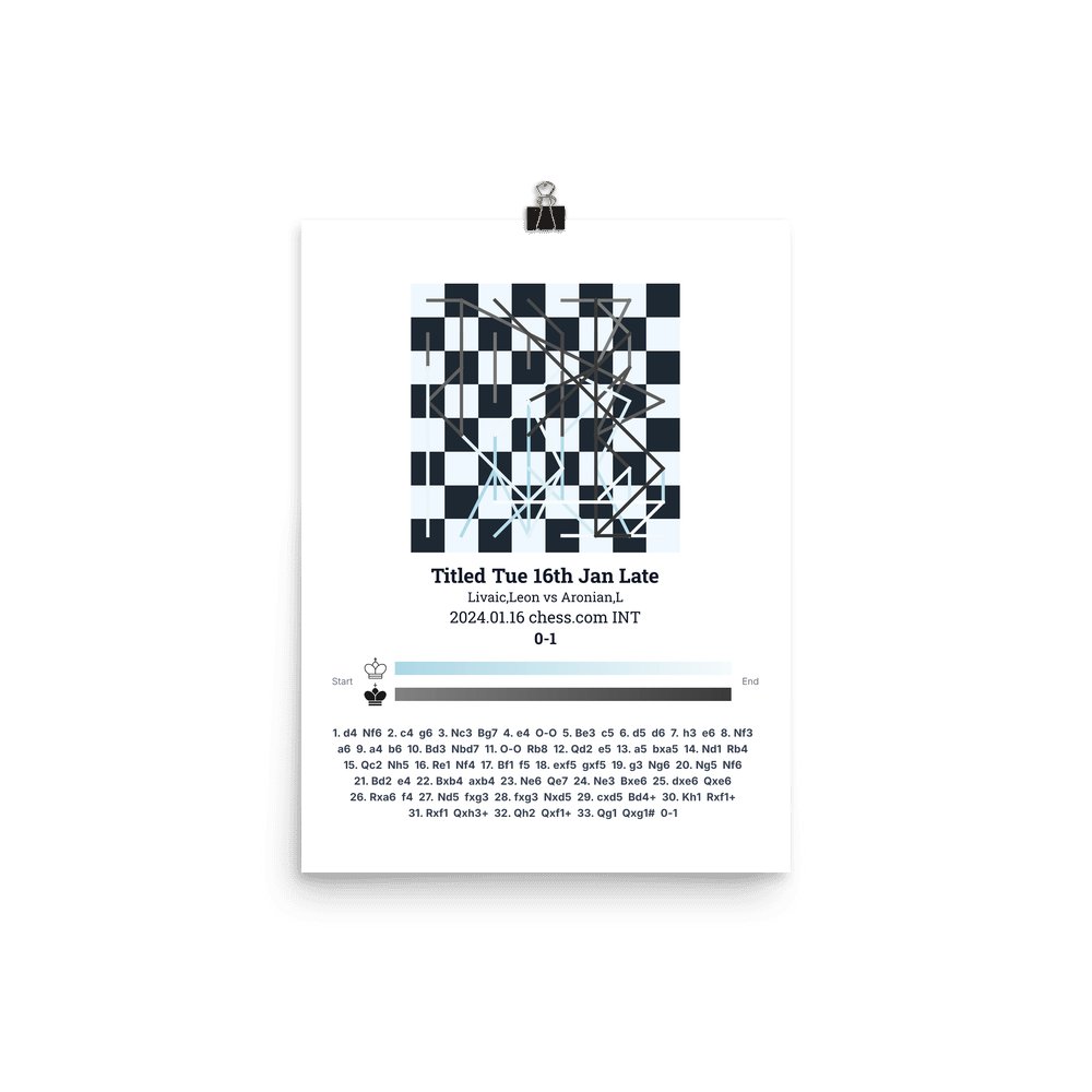 Museum-quality poster on thick, durable matte paper. A sharp, clean look for any chess visualisation.