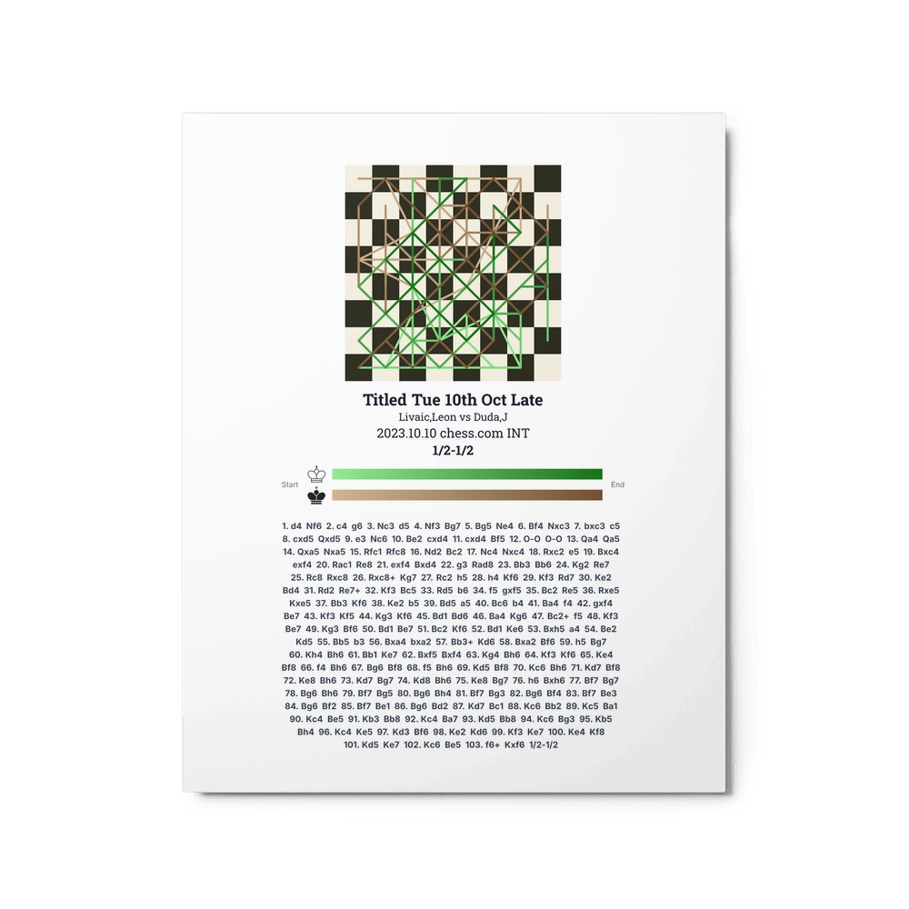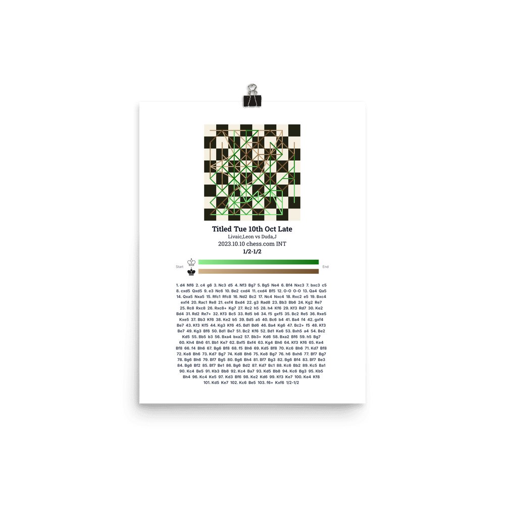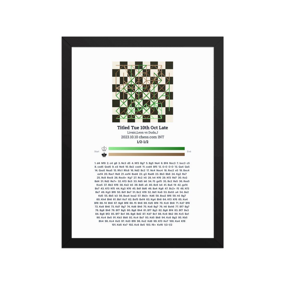 Museum-quality poster on thick, durable matte paper. A sharp, clean look for any chess visualisation.