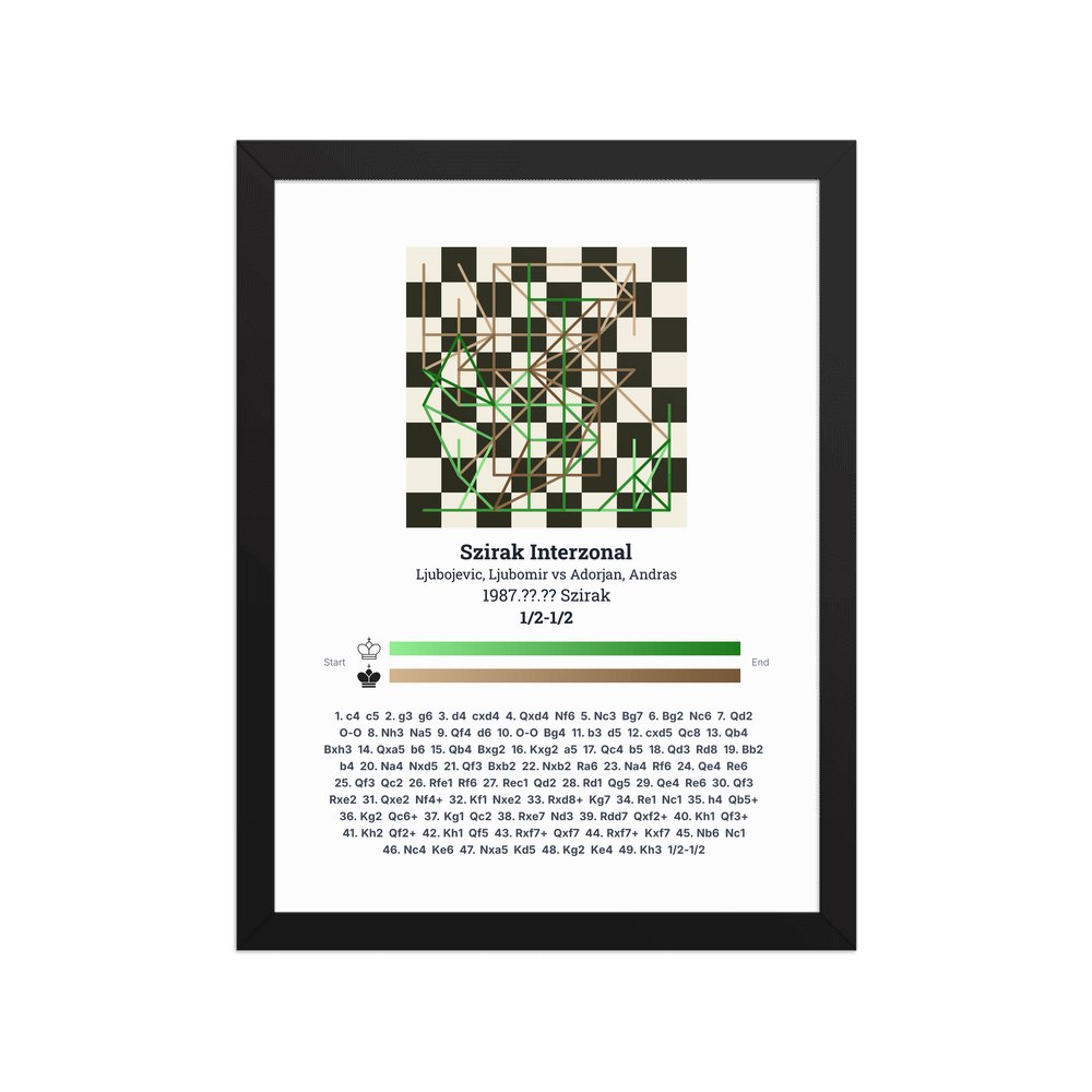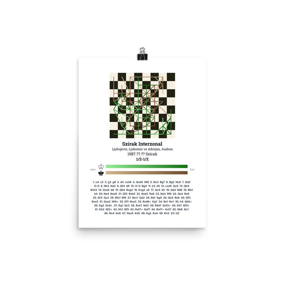 Museum-quality poster on thick, durable matte paper. A sharp, clean look for any chess visualisation.