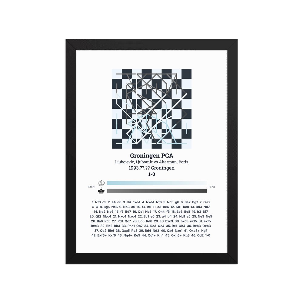 Museum-quality poster on thick, durable matte paper. A sharp, clean look for any chess visualisation.