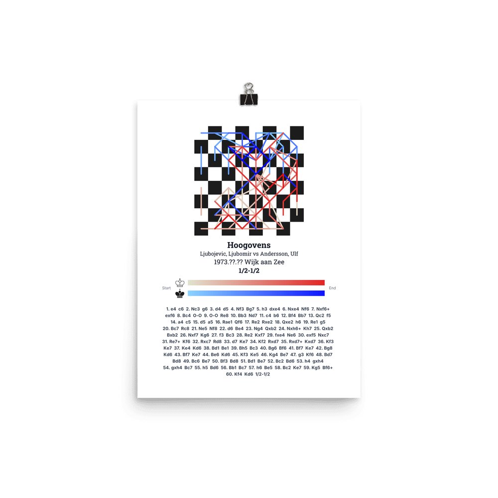 Museum-quality poster on thick, durable matte paper. A sharp, clean look for any chess visualisation.