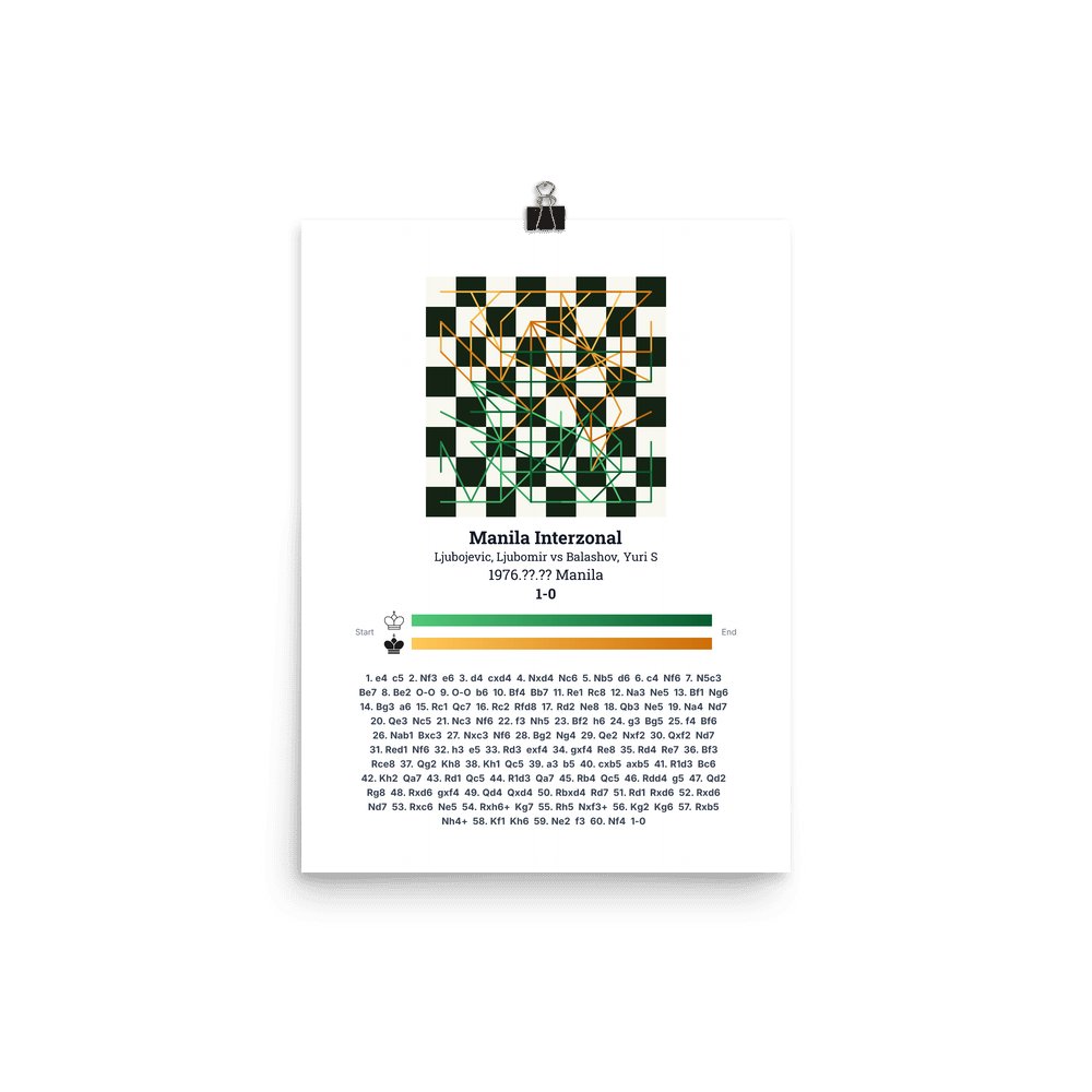 Museum-quality poster on thick, durable matte paper. A sharp, clean look for any chess visualisation.