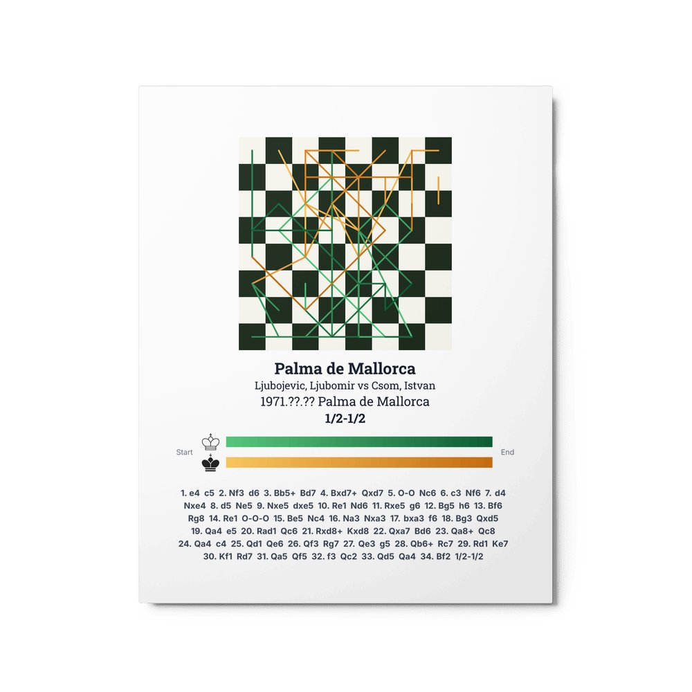 Museum-quality poster on thick, durable matte paper. A sharp, clean look for any chess visualisation.