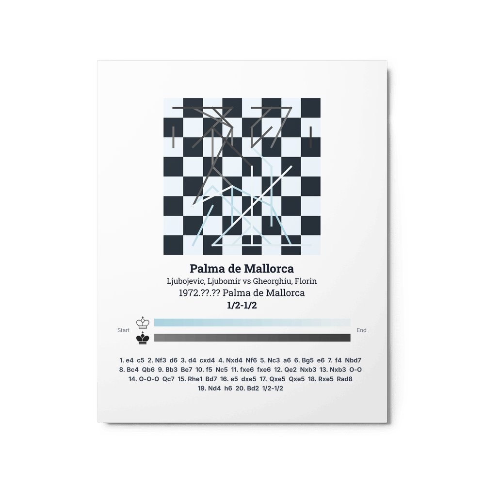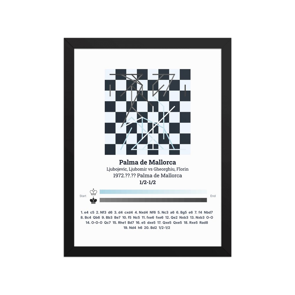Museum-quality poster on thick, durable matte paper. A sharp, clean look for any chess visualisation.