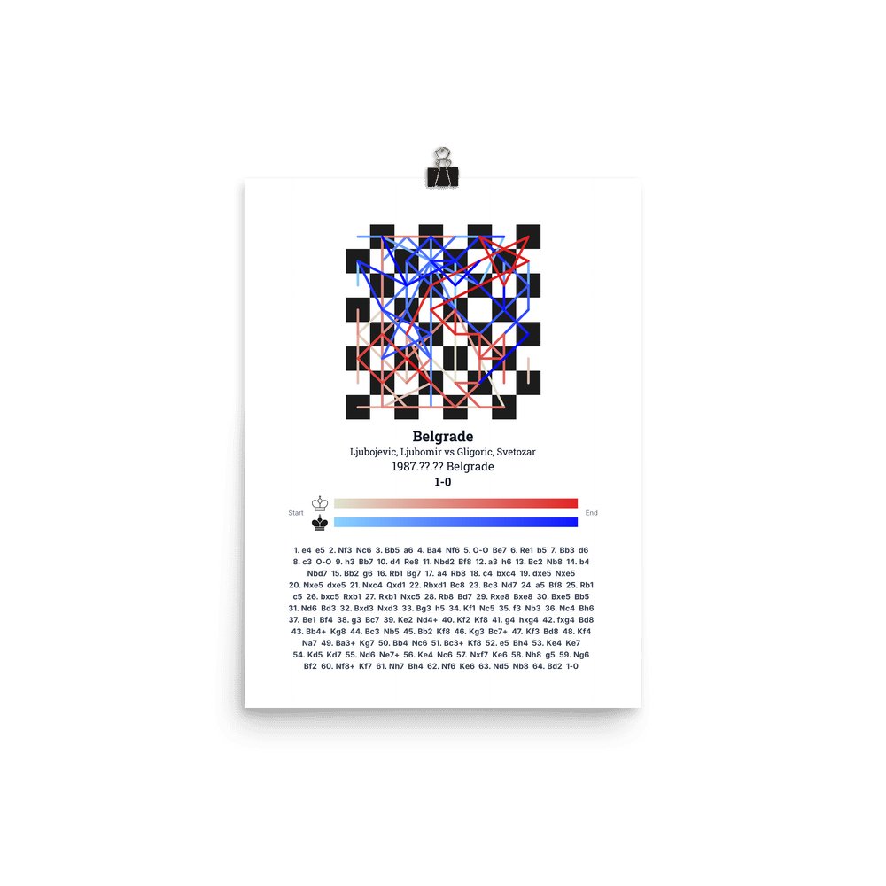 Museum-quality poster on thick, durable matte paper. A sharp, clean look for any chess visualisation.