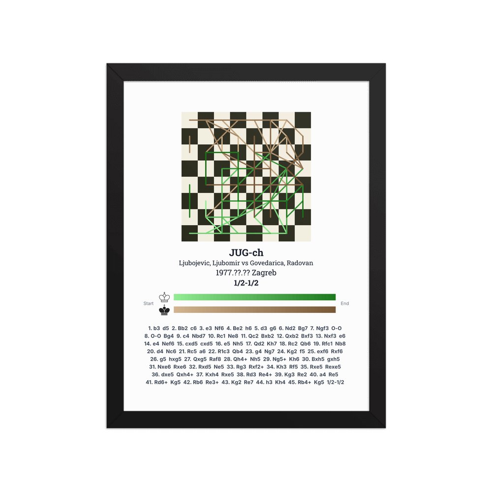 Museum-quality poster on thick, durable matte paper. A sharp, clean look for any chess visualisation.