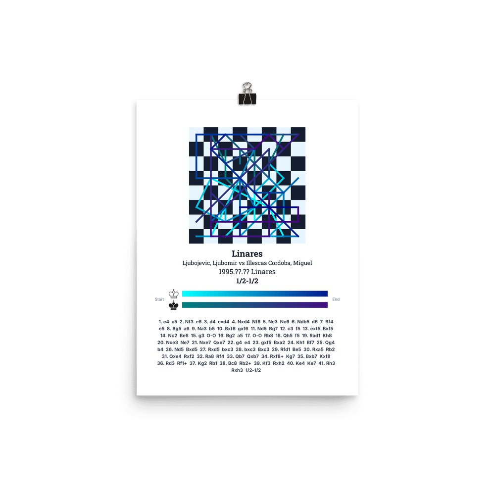 Museum-quality poster on thick, durable matte paper. A sharp, clean look for any chess visualisation.