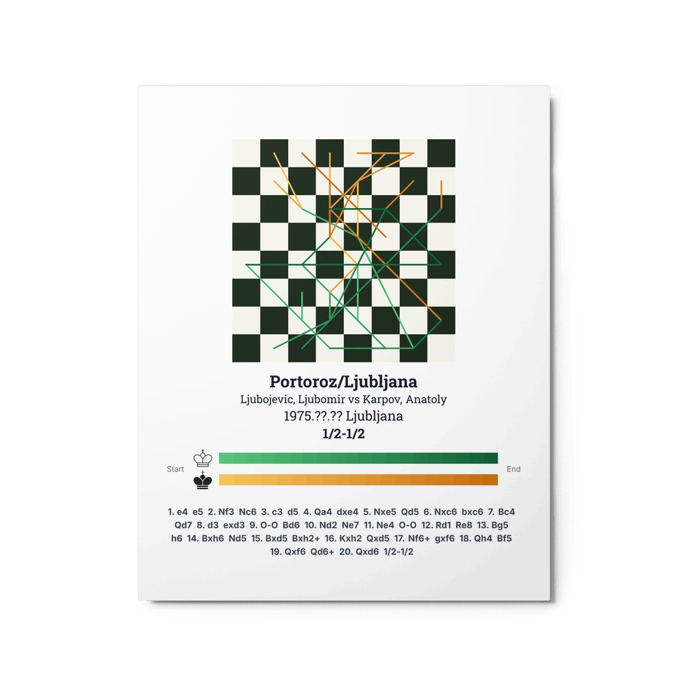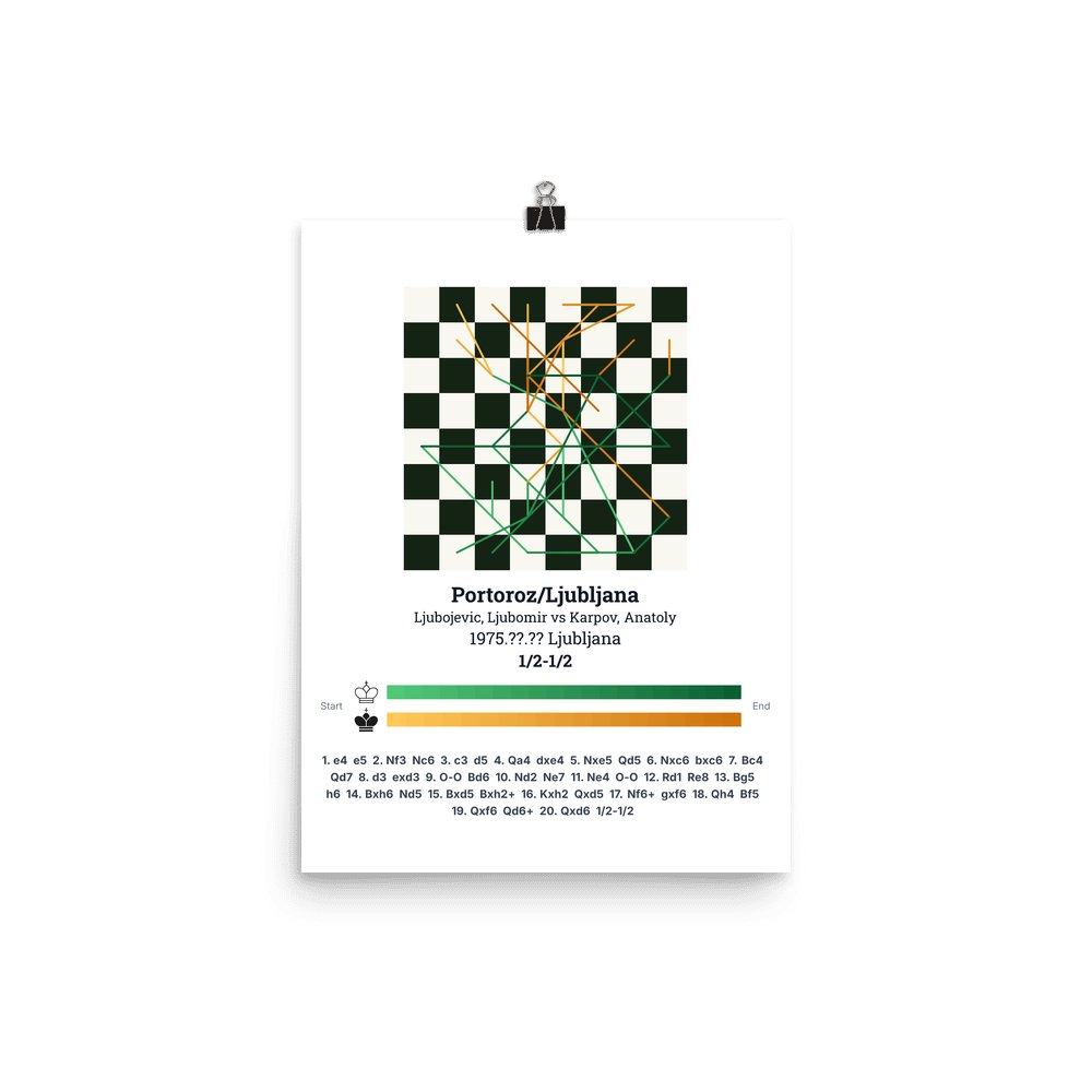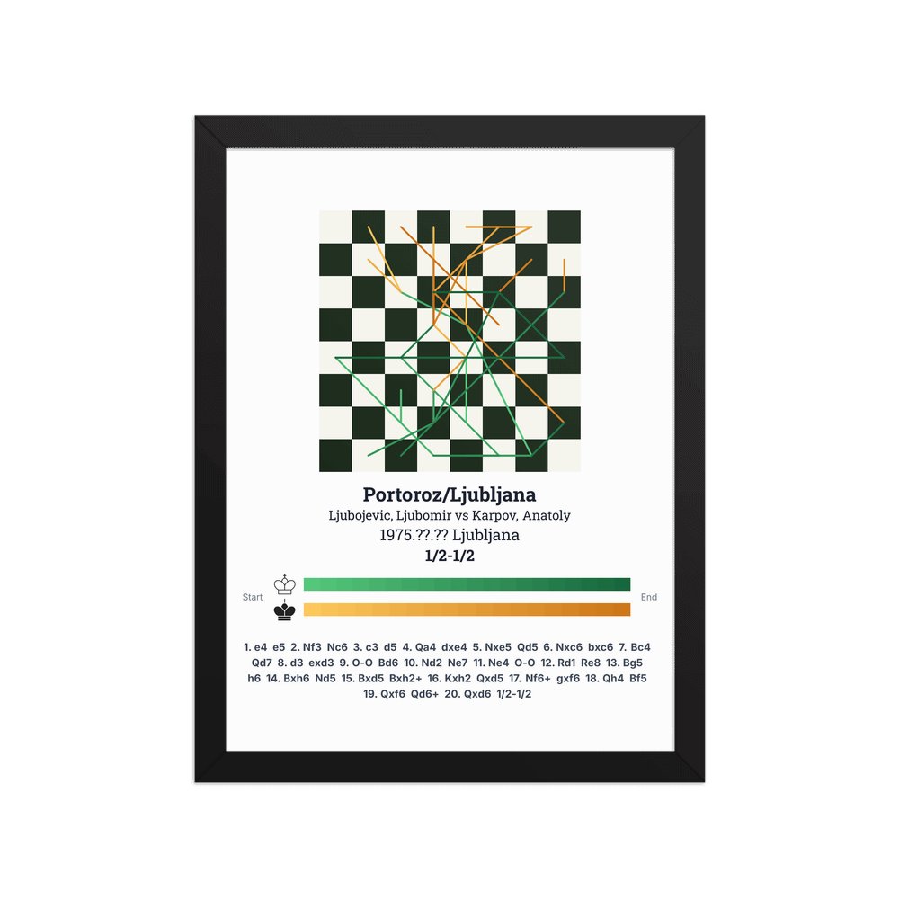 Museum-quality poster on thick, durable matte paper. A sharp, clean look for any chess visualisation.