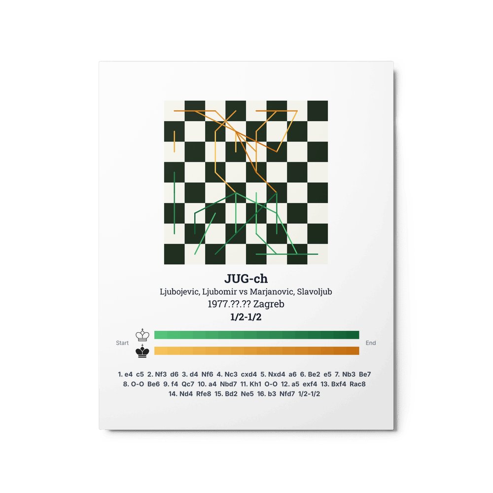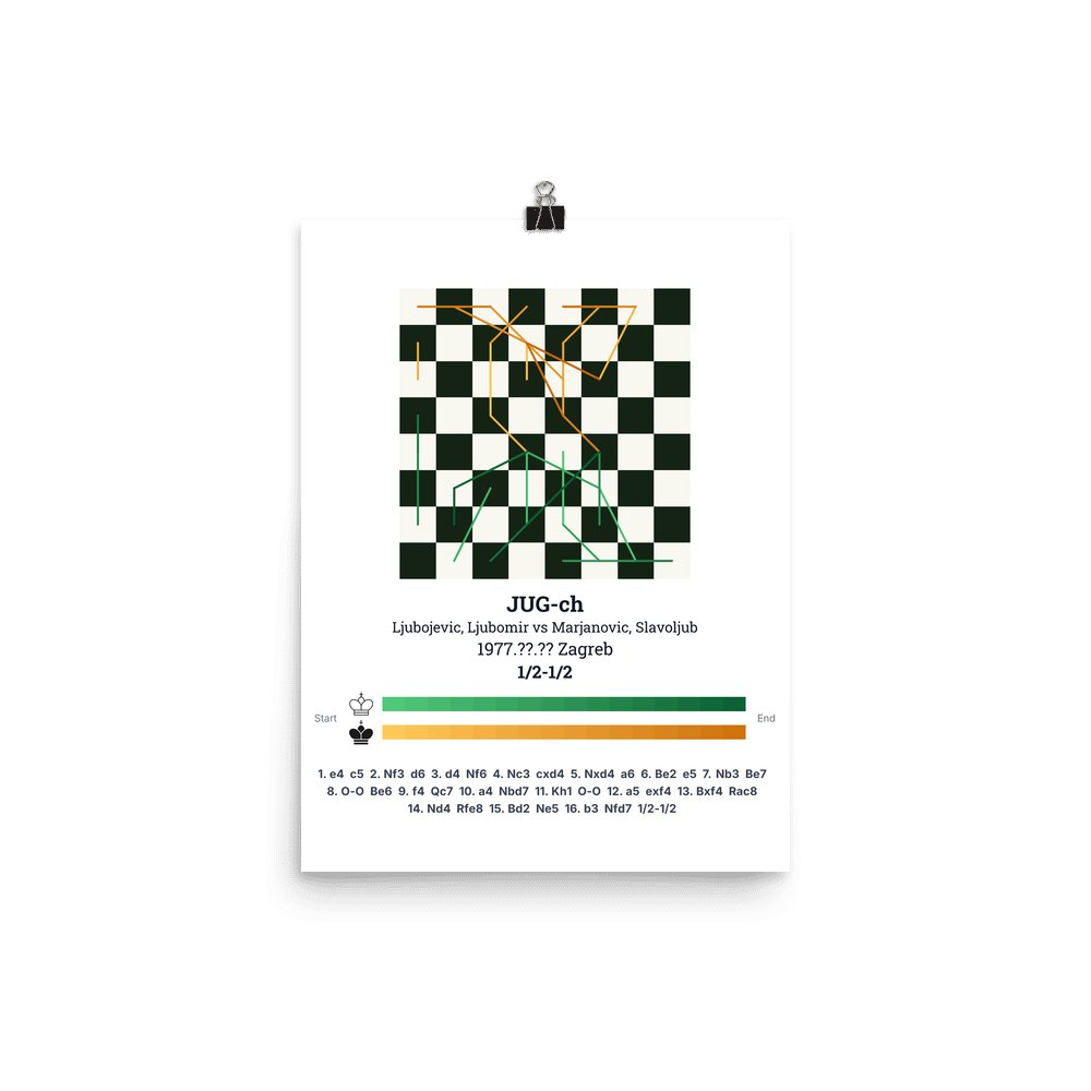 Museum-quality poster on thick, durable matte paper. A sharp, clean look for any chess visualisation.