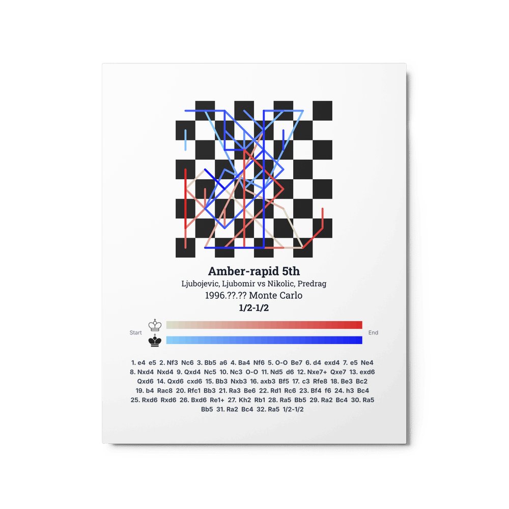Museum-quality poster on thick, durable matte paper. A sharp, clean look for any chess visualisation.