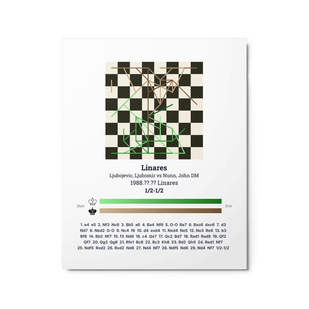 Museum-quality poster on thick, durable matte paper. A sharp, clean look for any chess visualisation.