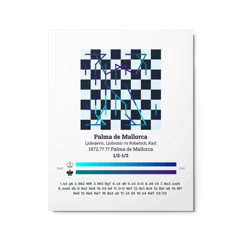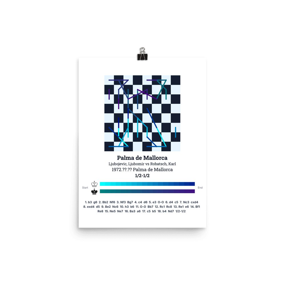 Museum-quality poster on thick, durable matte paper. A sharp, clean look for any chess visualisation.
