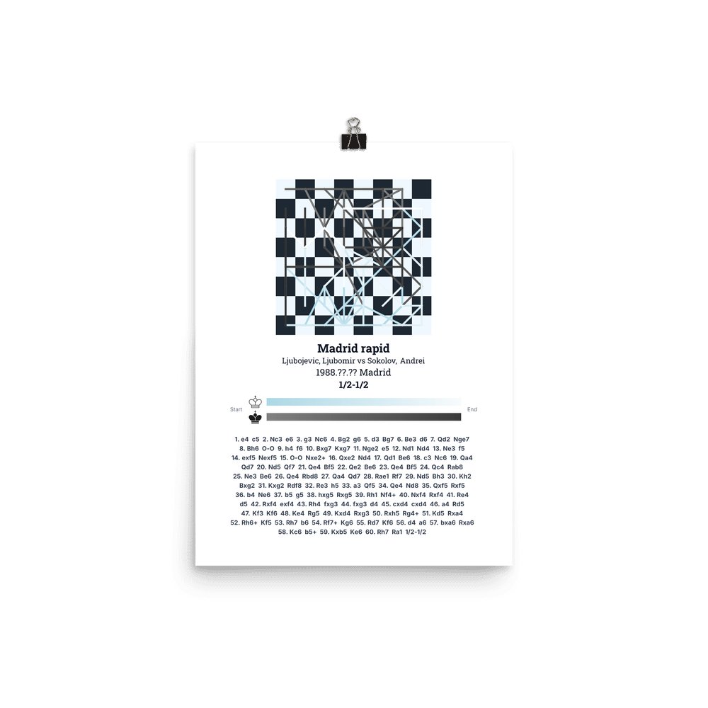 Museum-quality poster on thick, durable matte paper. A sharp, clean look for any chess visualisation.
