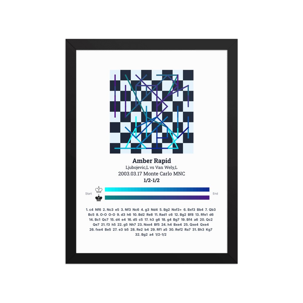 Museum-quality poster on thick, durable matte paper. A sharp, clean look for any chess visualisation.
