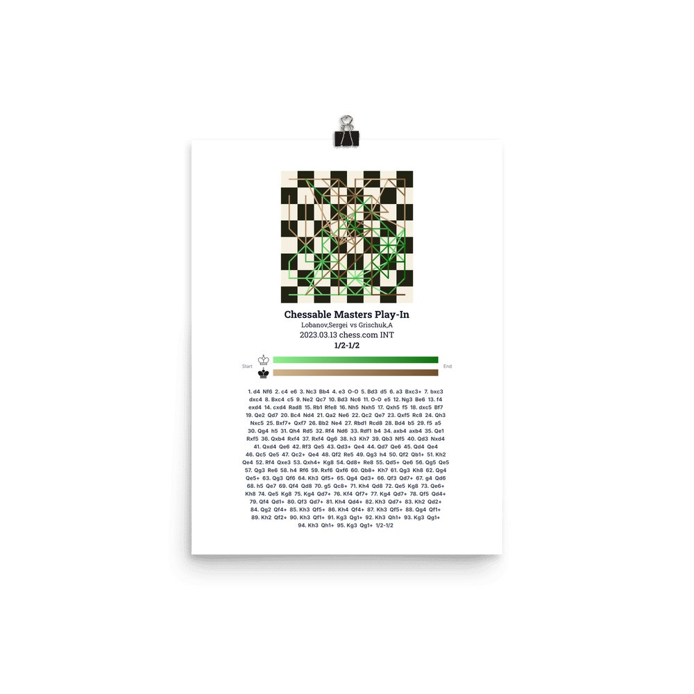 Museum-quality poster on thick, durable matte paper. A sharp, clean look for any chess visualisation.