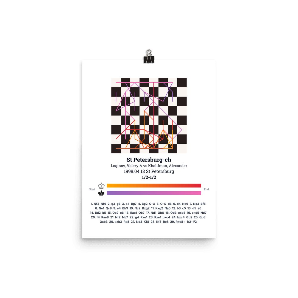 Museum-quality poster on thick, durable matte paper. A sharp, clean look for any chess visualisation.