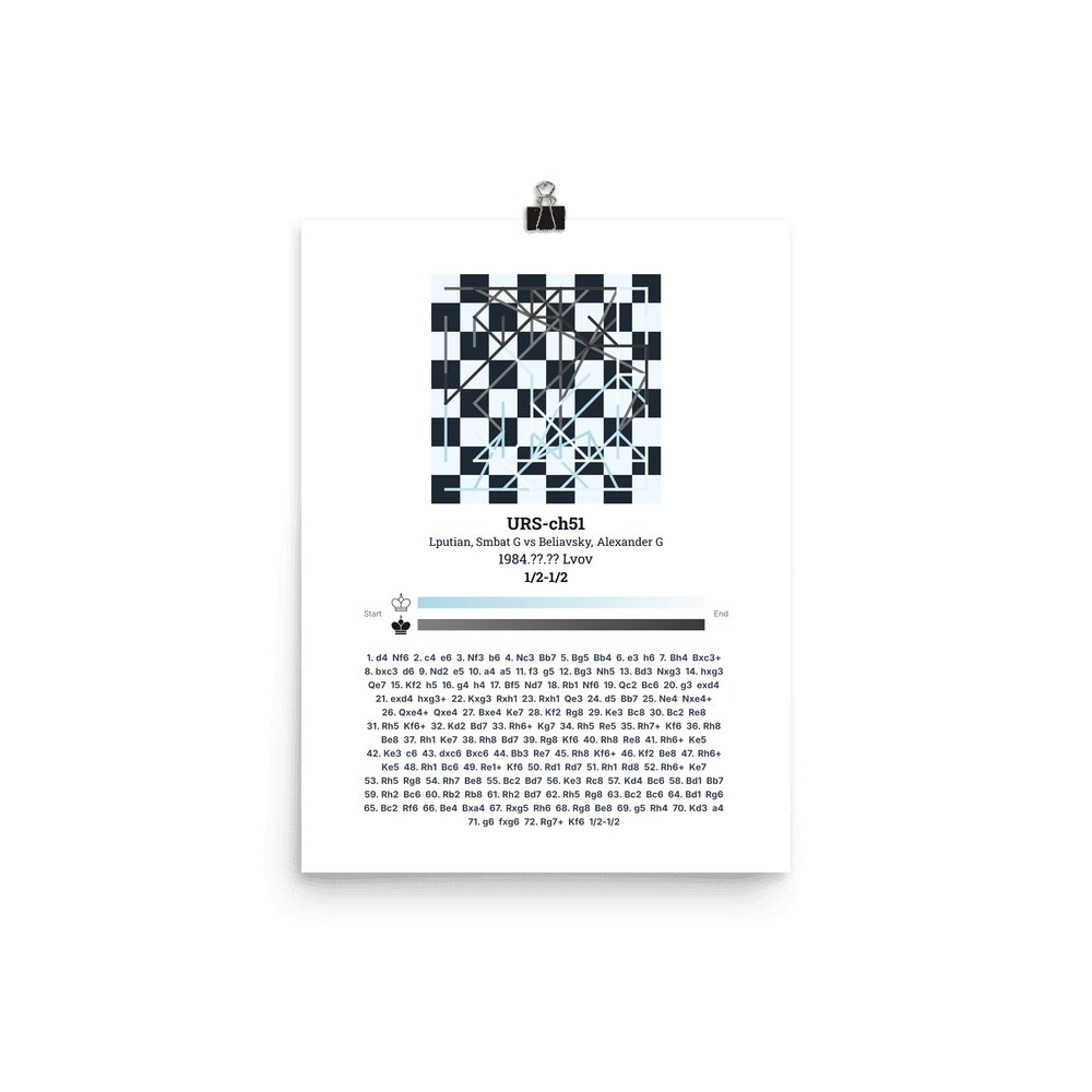 Museum-quality poster on thick, durable matte paper. A sharp, clean look for any chess visualisation.
