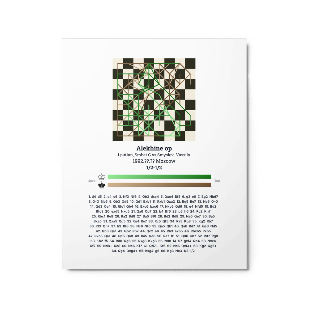 Museum-quality poster on thick, durable matte paper. A sharp, clean look for any chess visualisation.