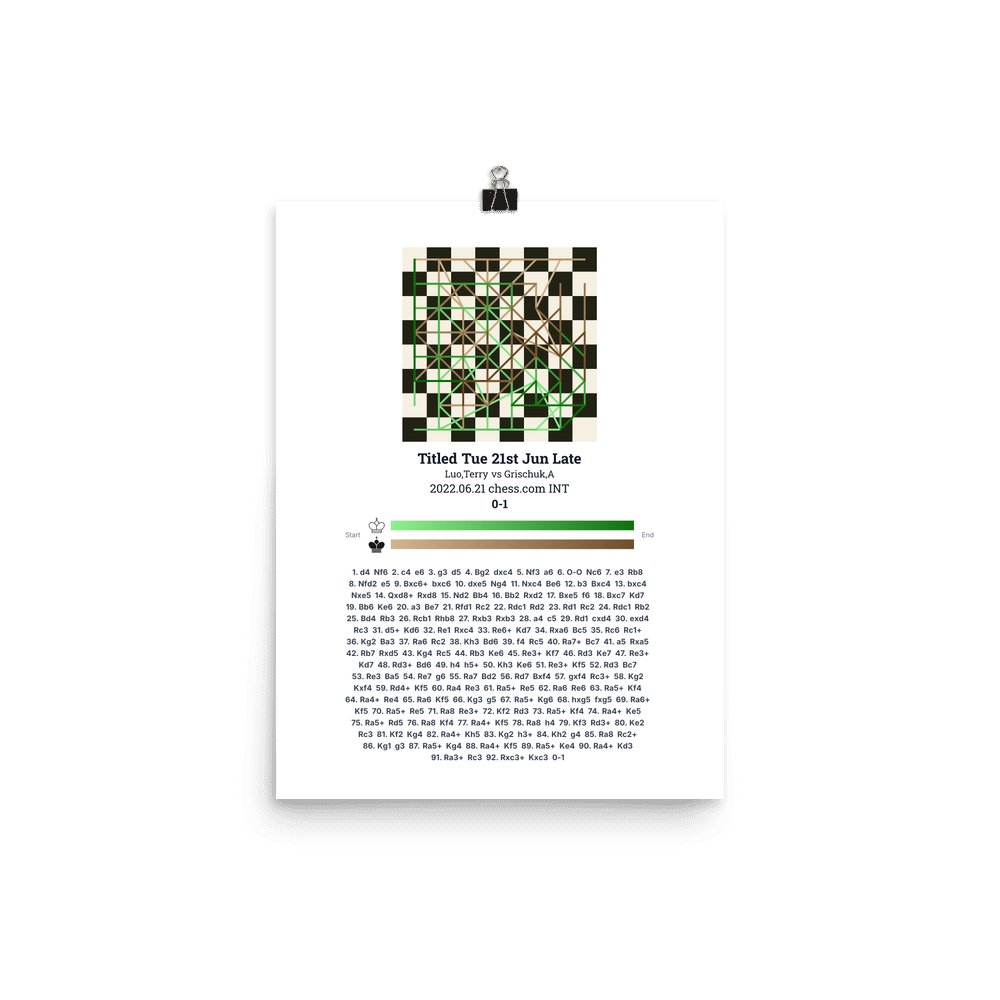 Museum-quality poster on thick, durable matte paper. A sharp, clean look for any chess visualisation.
