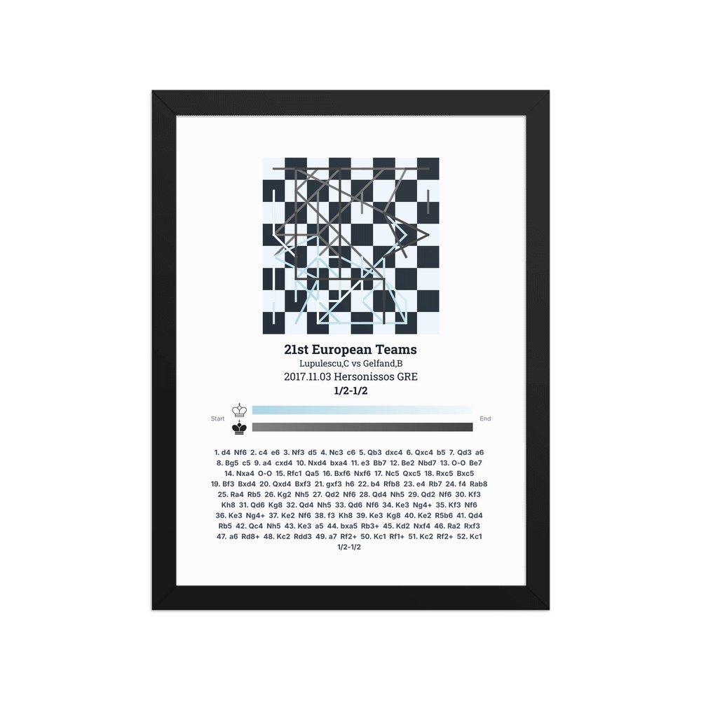 Museum-quality poster on thick, durable matte paper. A sharp, clean look for any chess visualisation.