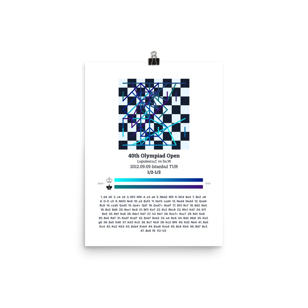 Museum-quality poster on thick, durable matte paper. A sharp, clean look for any chess visualisation.