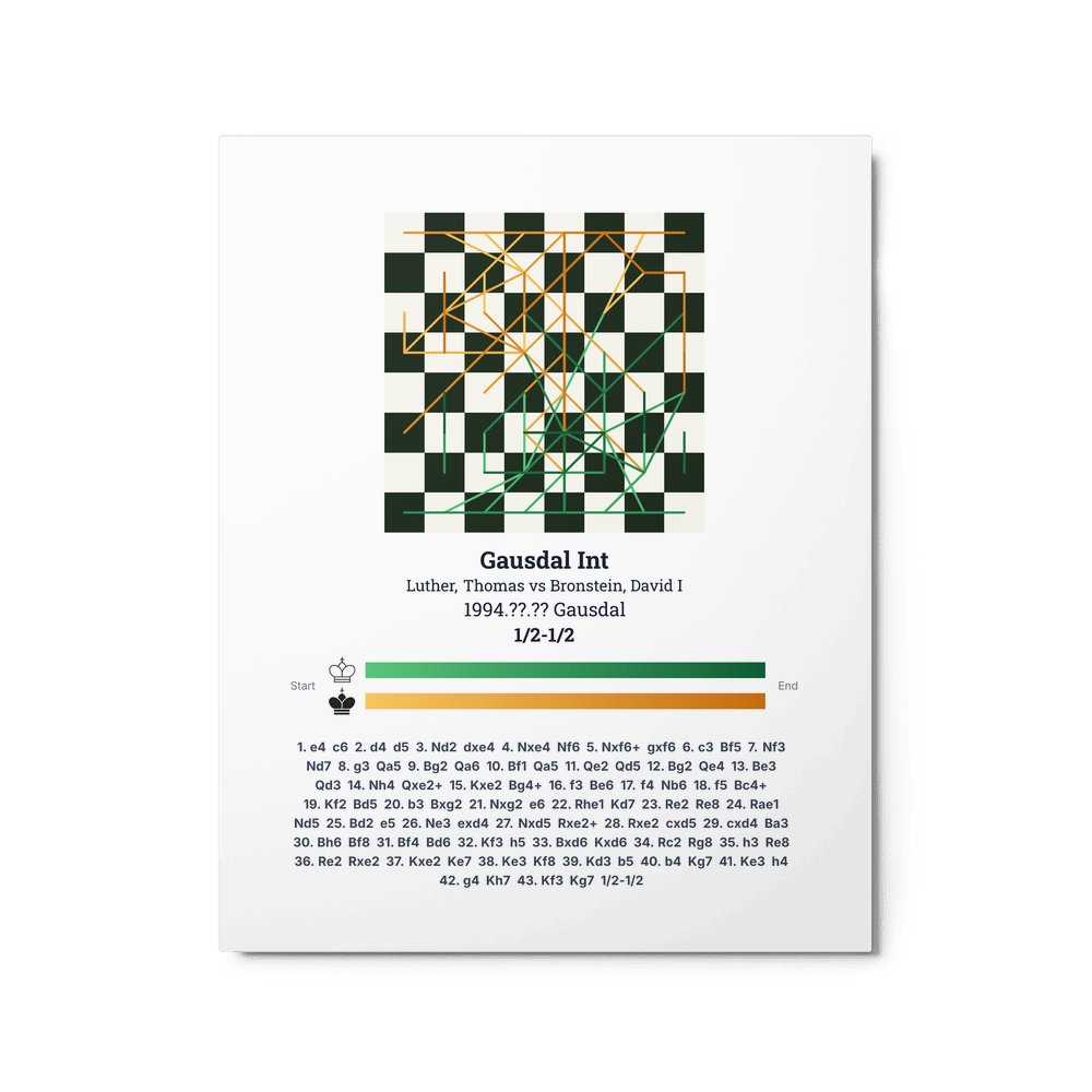 Museum-quality poster on thick, durable matte paper. A sharp, clean look for any chess visualisation.