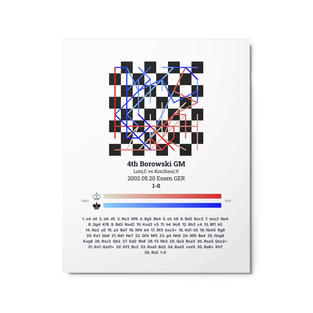 Museum-quality poster on thick, durable matte paper. A sharp, clean look for any chess visualisation.