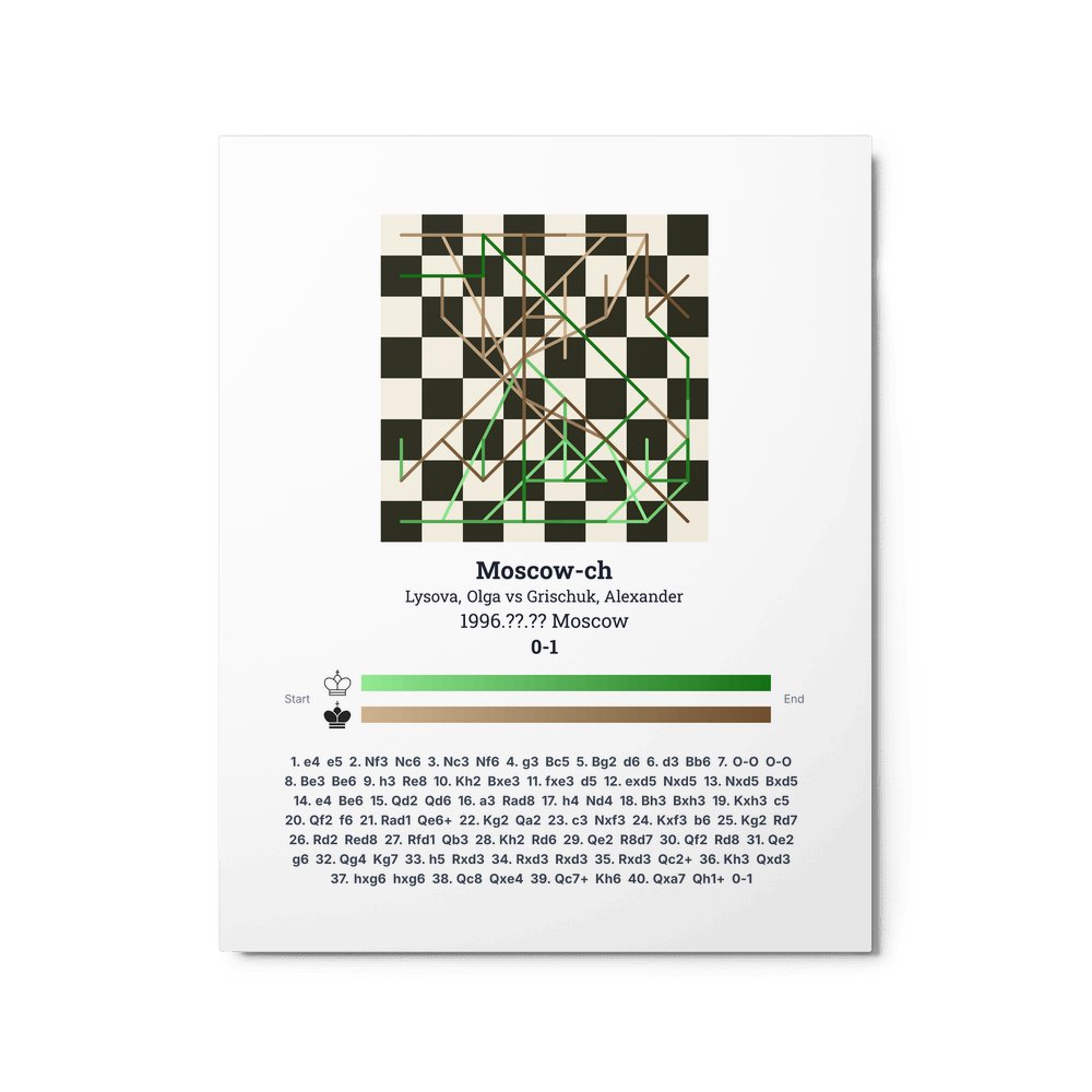 Museum-quality poster on thick, durable matte paper. A sharp, clean look for any chess visualisation.