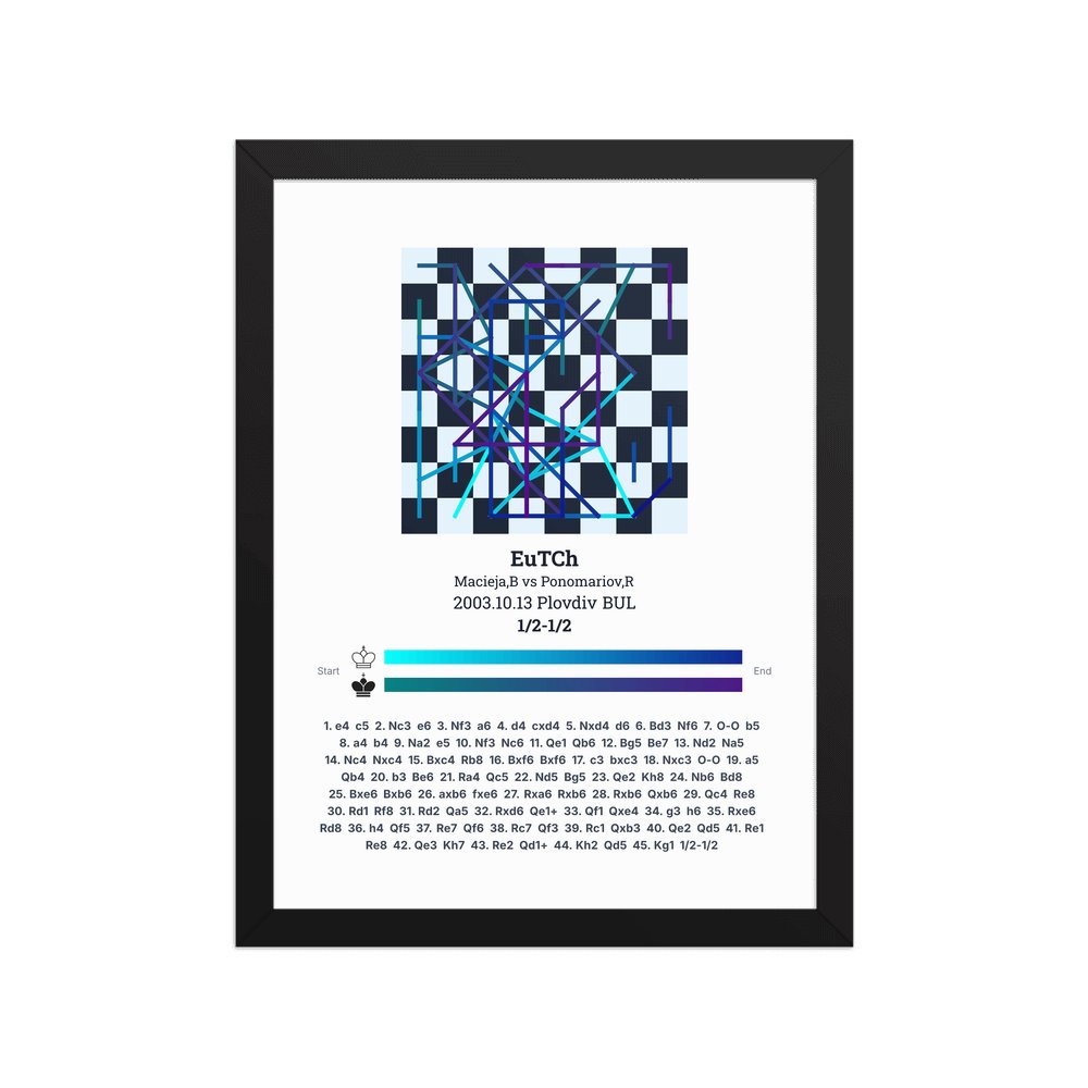 Museum-quality poster on thick, durable matte paper. A sharp, clean look for any chess visualisation.