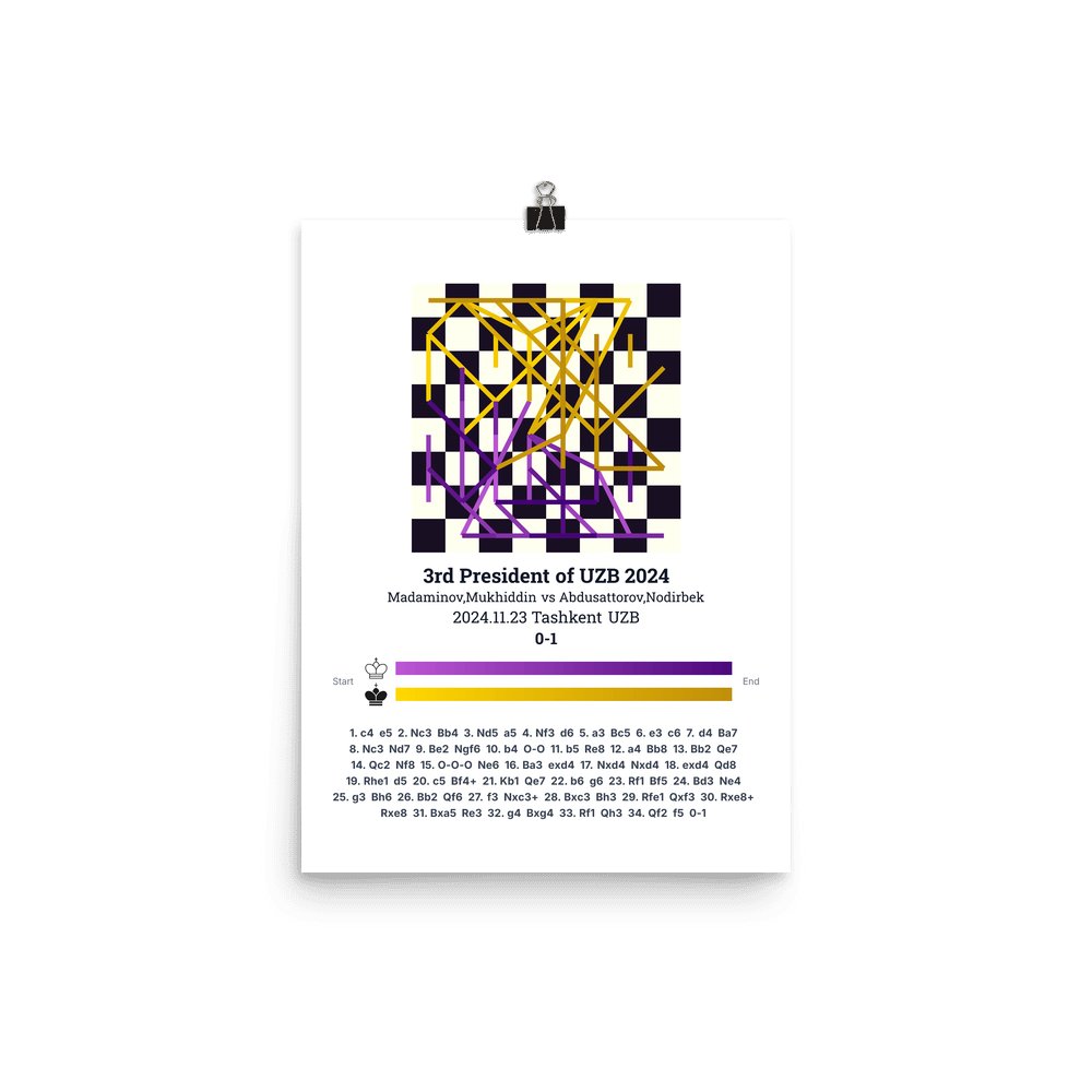 Museum-quality poster on thick, durable matte paper. A sharp, clean look for any chess visualisation.