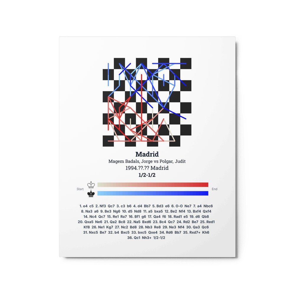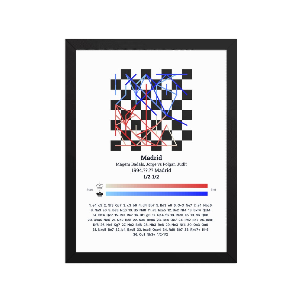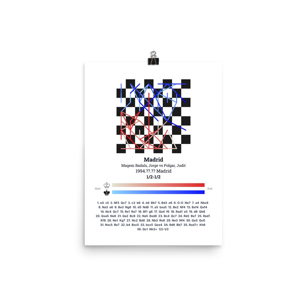 Museum-quality poster on thick, durable matte paper. A sharp, clean look for any chess visualisation.