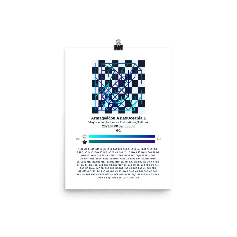 Museum-quality poster on thick, durable matte paper. A sharp, clean look for any chess visualisation.