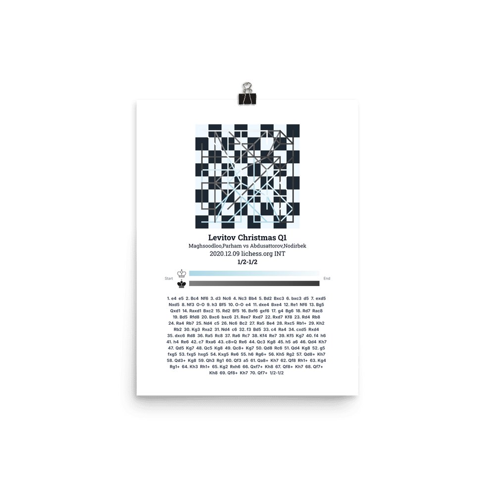 Museum-quality poster on thick, durable matte paper. A sharp, clean look for any chess visualisation.