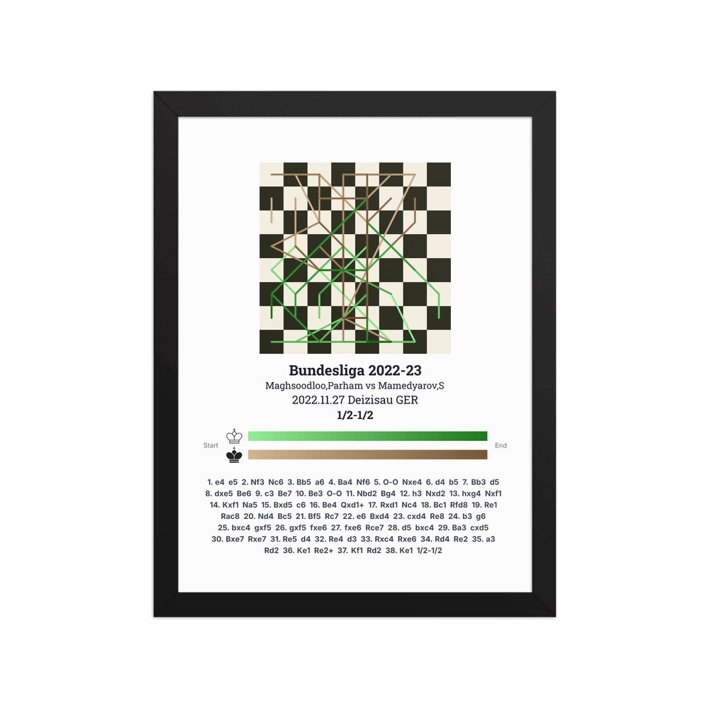 Museum-quality poster on thick, durable matte paper. A sharp, clean look for any chess visualisation.