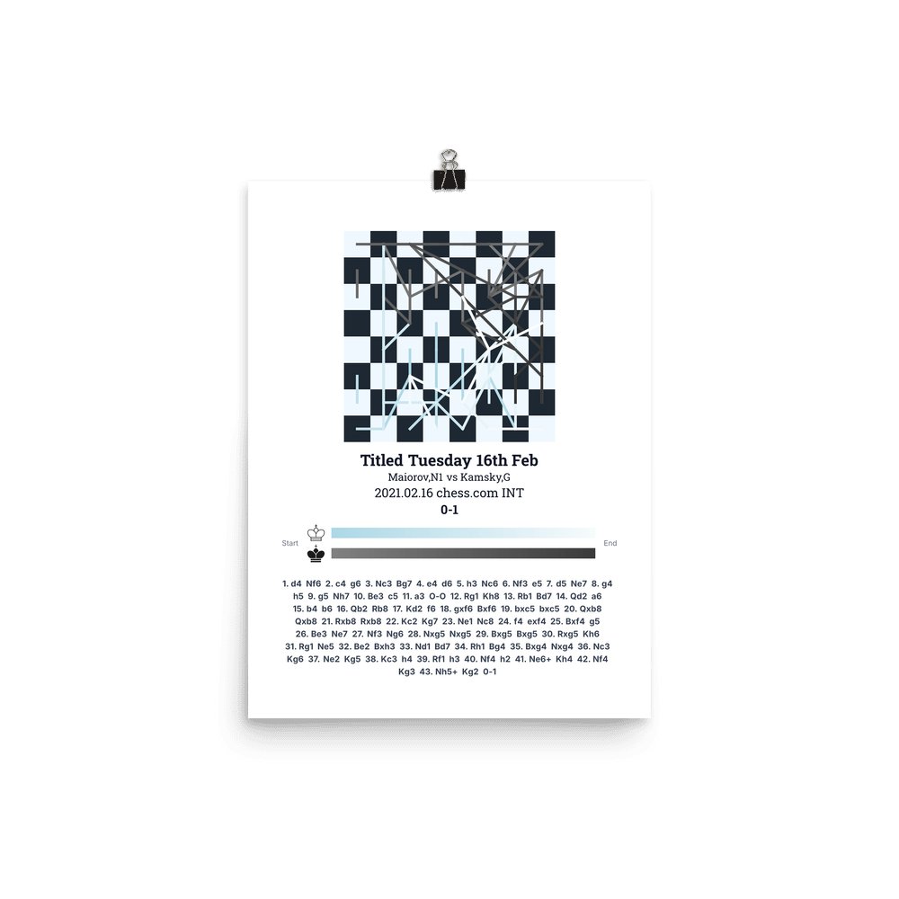 Museum-quality poster on thick, durable matte paper. A sharp, clean look for any chess visualisation.