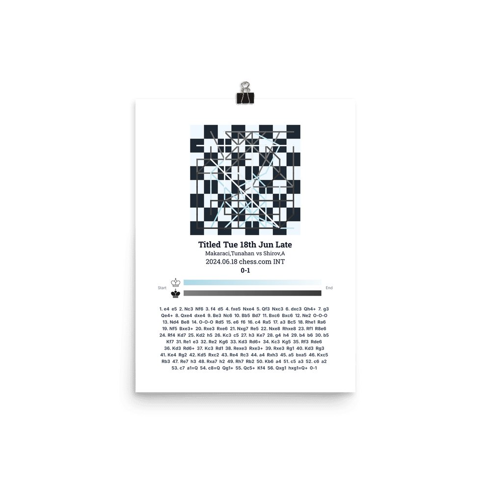 Museum-quality poster on thick, durable matte paper. A sharp, clean look for any chess visualisation.