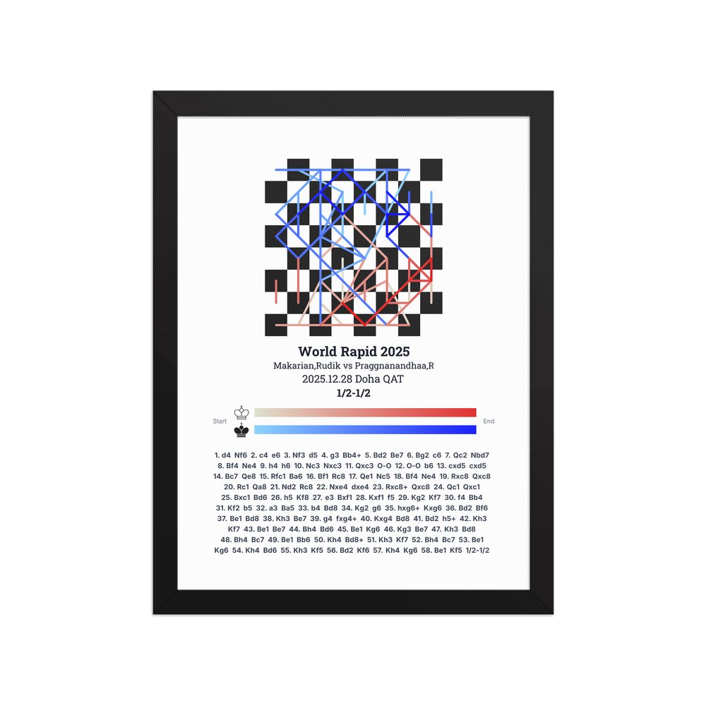 Museum-quality poster on thick, durable matte paper. A sharp, clean look for any chess visualisation.