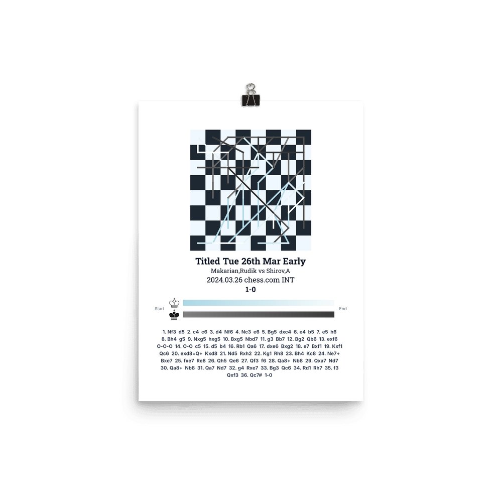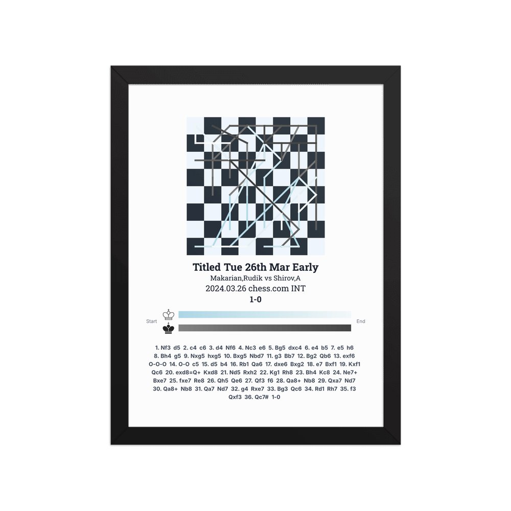 Museum-quality poster on thick, durable matte paper. A sharp, clean look for any chess visualisation.